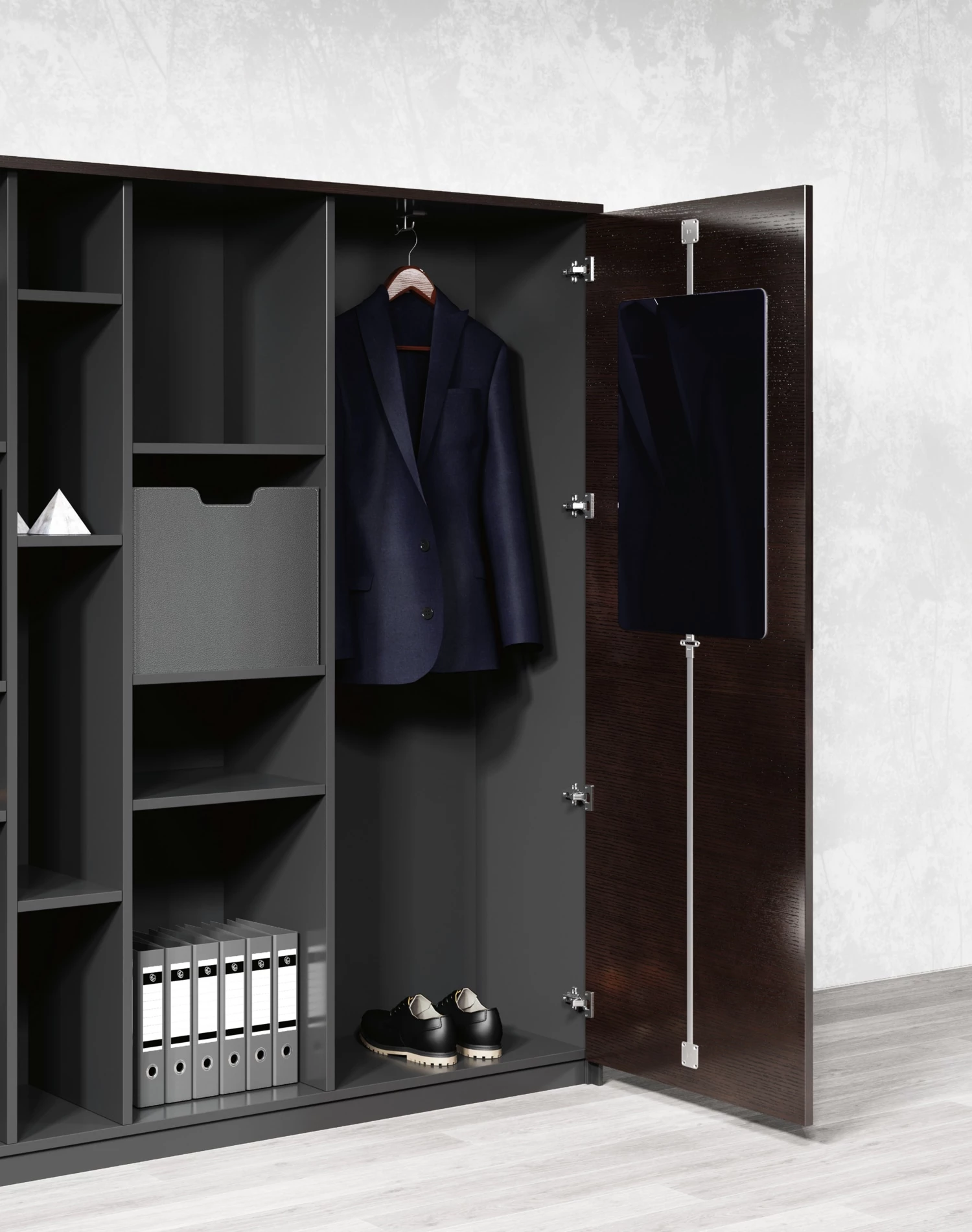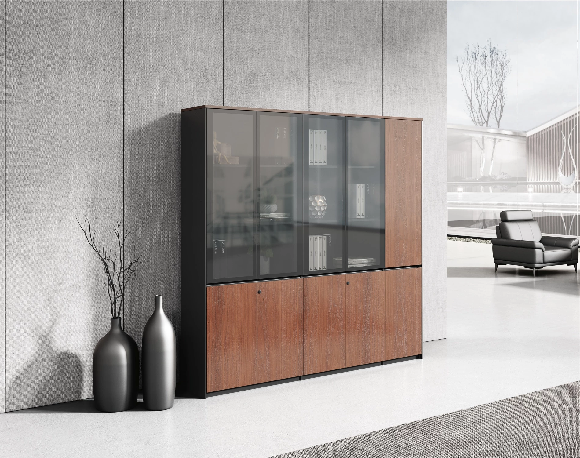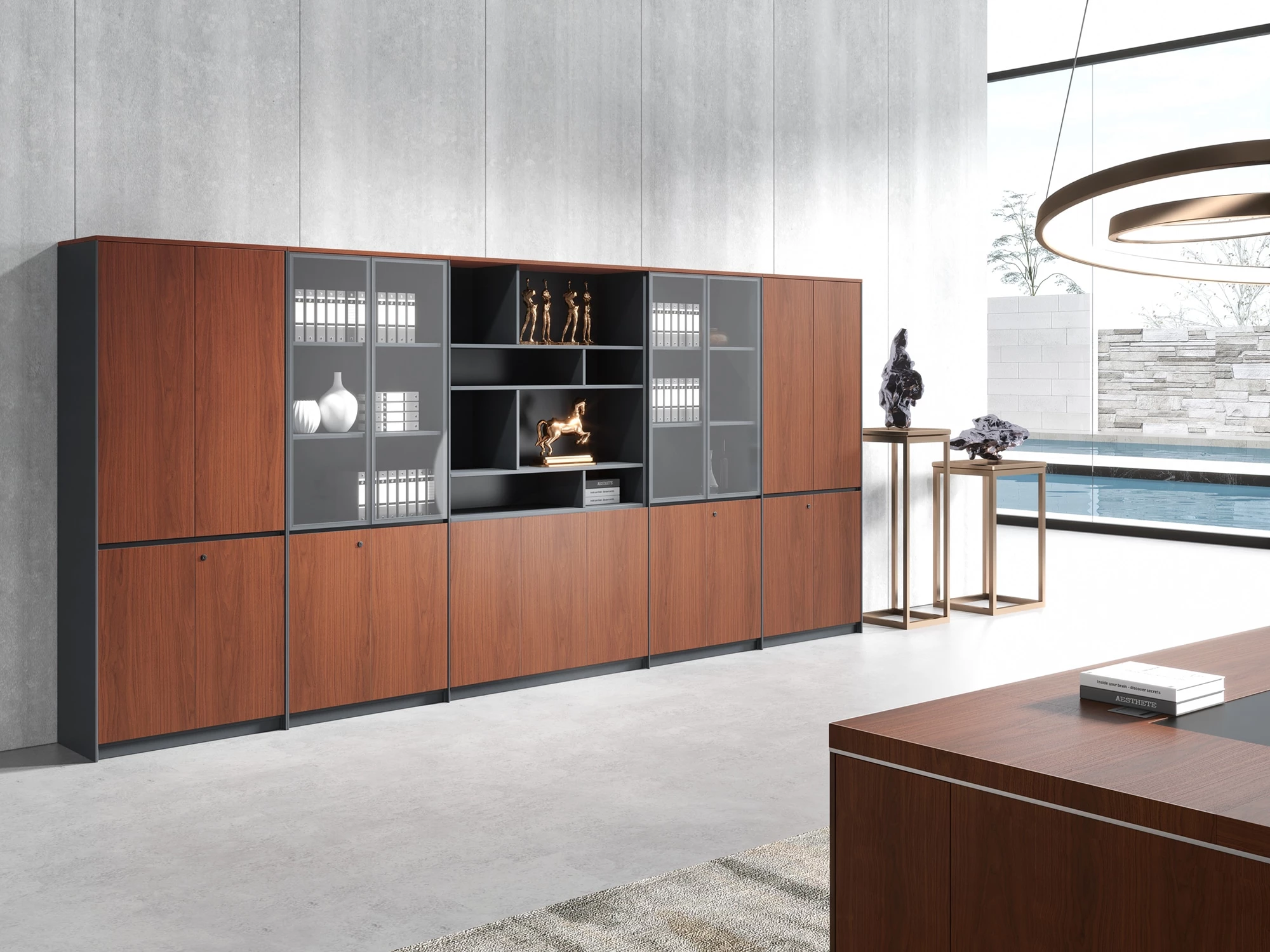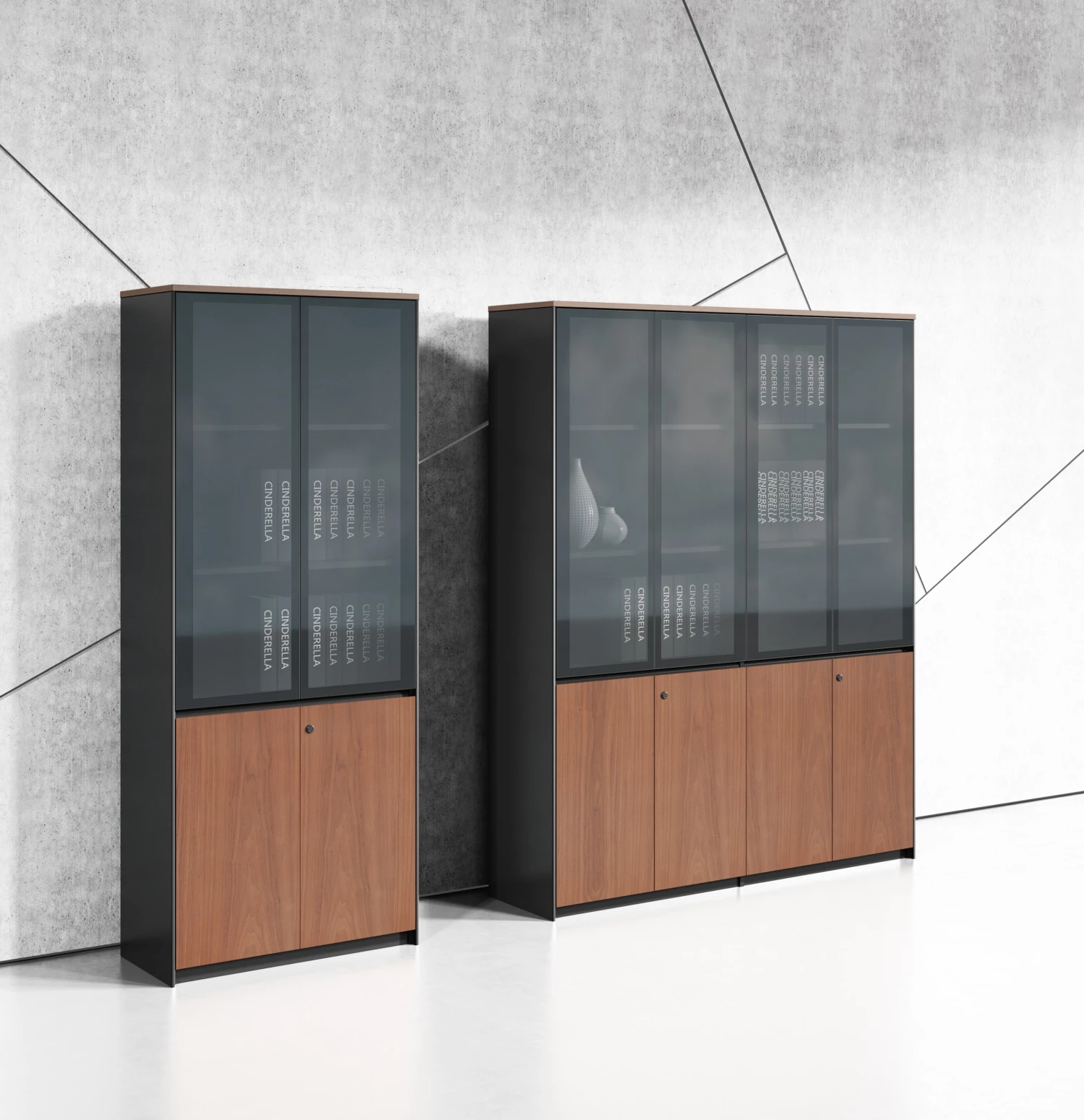 Двери: шпон; тонированное стекло в алюминиевой рамке